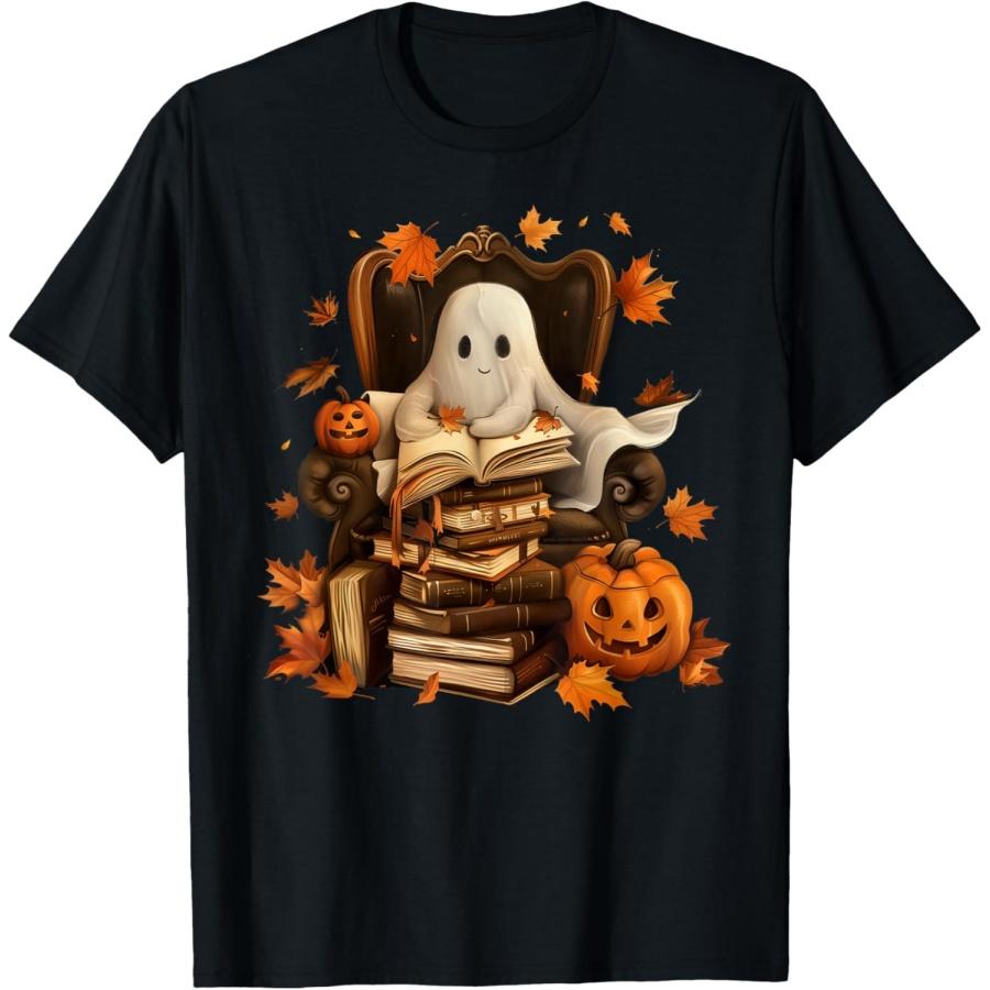 Vintage Ghost Book Reading Pumpkin Gothic Halloween Teachers T-Shirt