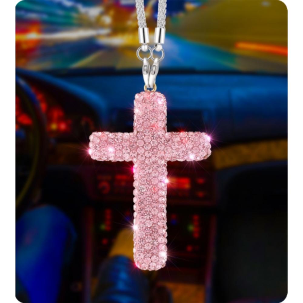 DE: K-Style Kreuzanhänger für das Auto — Luxuriöses Funkeln und Schutz in Schwarz, Rosa oder Silber. Ein elegantes Highlight für jede Fahrt. 🚗💖✝️