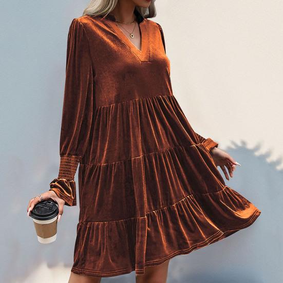 Perfect for various occasions, this solid color dress exudes simplicity, elegance, and sophistication.