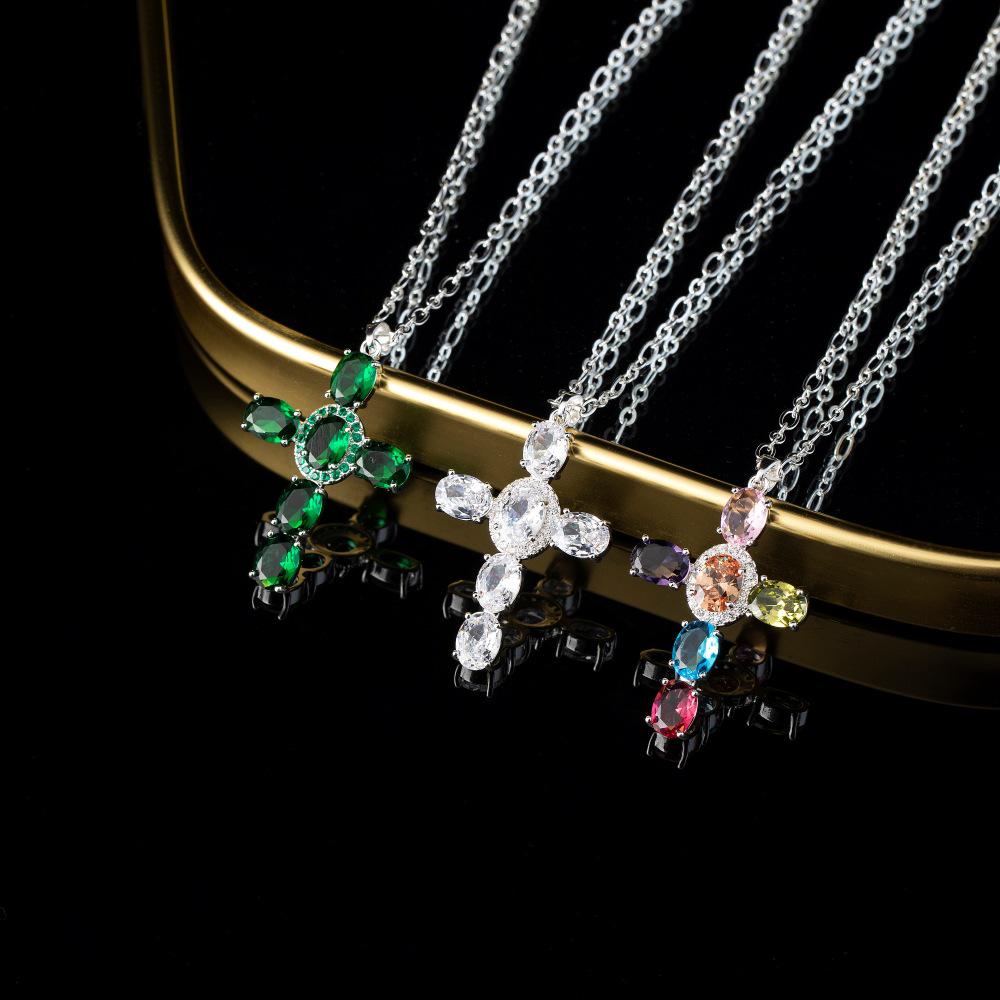 Copper-Plated 18K Gold Silver Necklace with Zirconia Cross Pendant