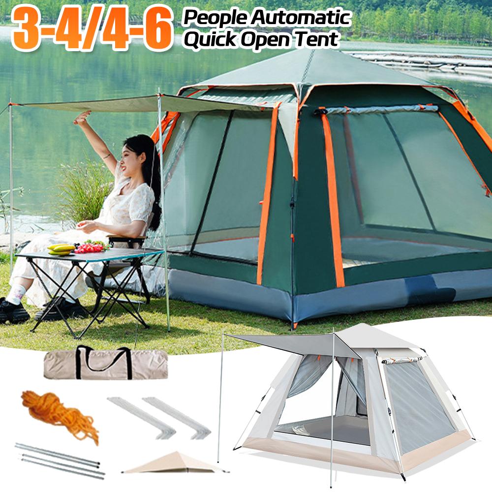 Automatic Quick Open Tent with Canopy Portable Outdoor Rain/Sun Proof Tent for Family Travel Self-drive Camping 3-4/4-6 People