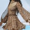 Women Spring Summer Lady Holiday Dresses Hollow Out Lantern Sleeve Mini Dress Sexy Solid V Neck Green Mesh Short Vestidos