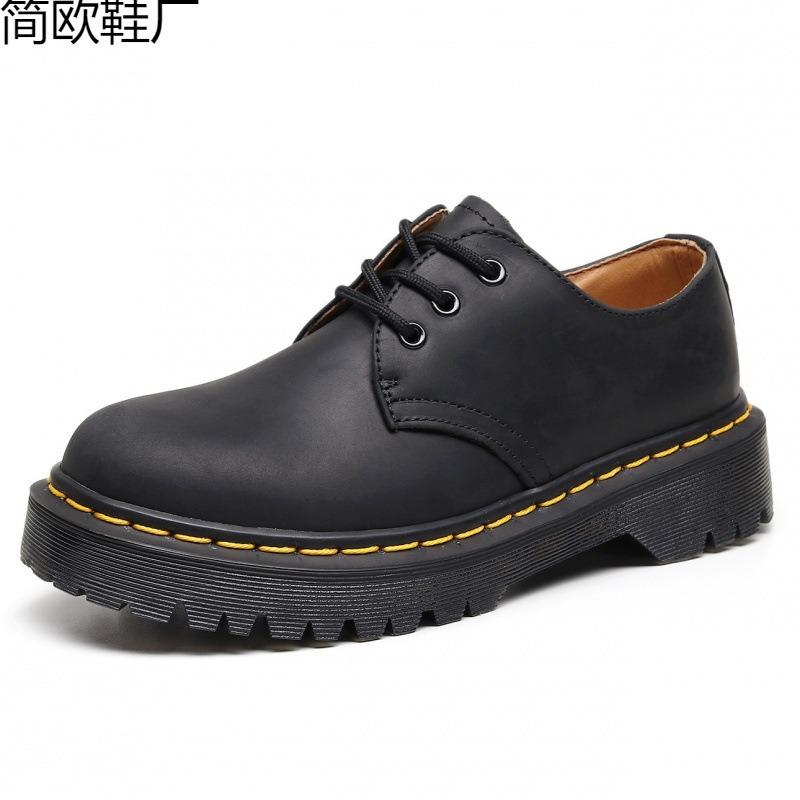 Martin Boots First Layer 1 Low-top Small Leather Shoes Women's Genuine Leather Crazy Horse Black Large Size Short Boots Round Head Men's Break