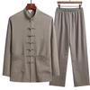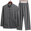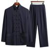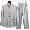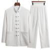 Spring and Autumn Men's Chinese Traditional Clothing Set Man Fall Linen Buckle Kung Fu Shirt Oriental Retro Top Pants Tai Chi Breathable Uniforms