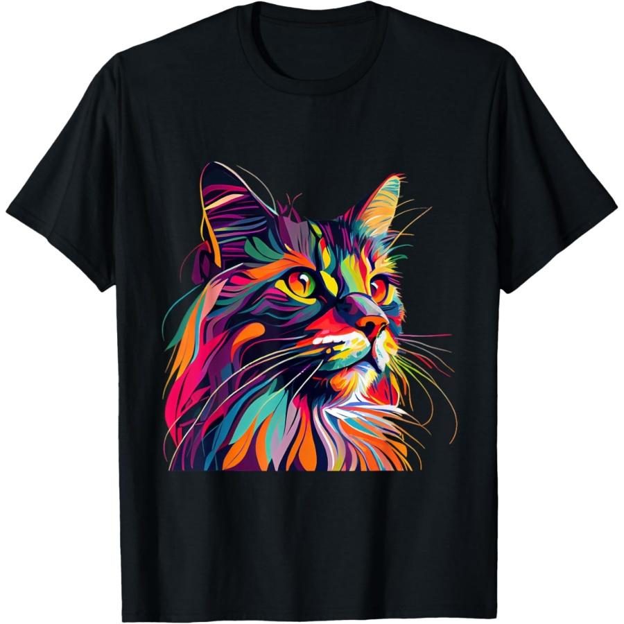 Maine Coon Cat Lovers Colorful Pop Art Maine Coon T-Shirt for Men Women Girls Kids