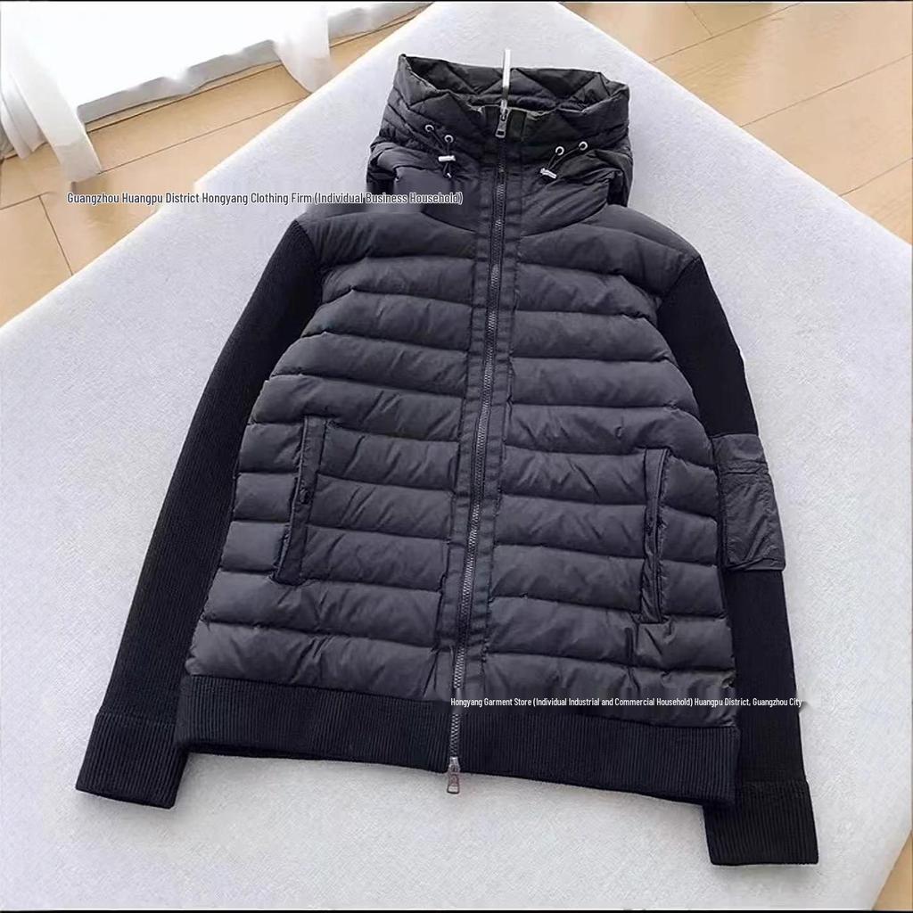 The 2025 M Brand Knitted Patchwork Hooded Down Jacket is a versatile unisex piece designed for both style and warmth. This cardigan-style outerwear features a solid pattern and is filled with premium white duck down, ensuring excellent insulation against cold weather. The jacket's exterior is crafted from durable polyester, providing both comfort and longevity. It features a tailored neckline and a hood for added protection and style. The use of polyester fur accentuates its modern aesthetic, making it a perfect choice for casual wear. Ideal for those seeking a blend of fashion and functionality, this jacket is tailored for men but offers a universally appealing design.