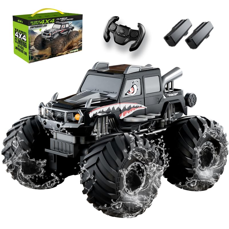 ★[Amphibious & 4-wheel Drive Radio-Controlled Car] ZAVEN's amphibious radio-controlled car is waterproof and can drive on land and water. Its powerful 4WD system allows it to traverse grass, gravel, mud, and puddles with ease, making it a thrilling ride both indoors and outdoors. It's a popular toy for kids and makes a great gift for boys and girls.