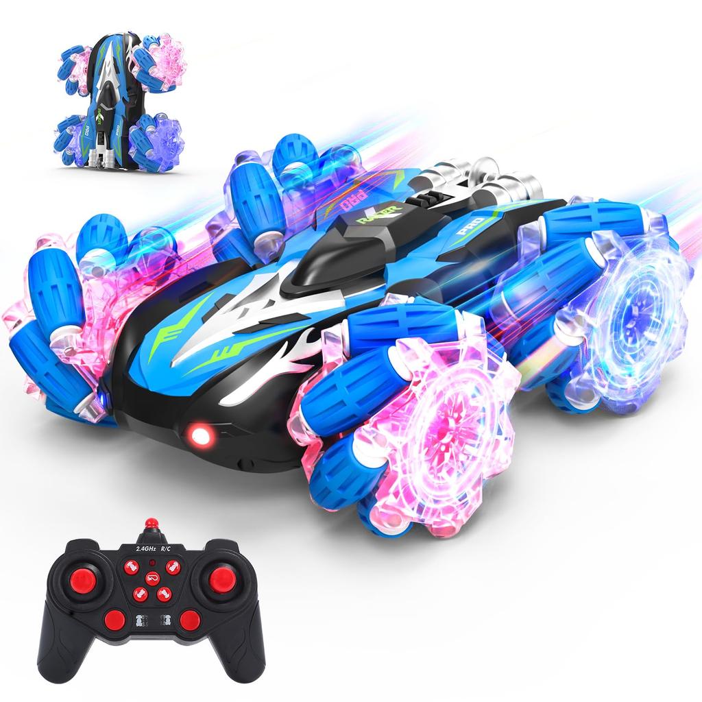 RC Stunt Car for Kids, 4WD, 4-Wheel Drive, USB Rechargeable, LED Lights, Double-Sided Driving, 360-Degree Rotation, 45-Degree Movement, Side-Skidding, 2.4Ghz Wireless Control, Educational Toy for Elementary and Middle School Students, Gift for Birthdays, Children's Day, Technical Standards Approved, Model 9900