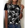 Skulls Pattern 3D Print T-Shirts Women O-Neck Short Sleeve T Shirt Y2k Harajuku Tees Tops Female Clothing
