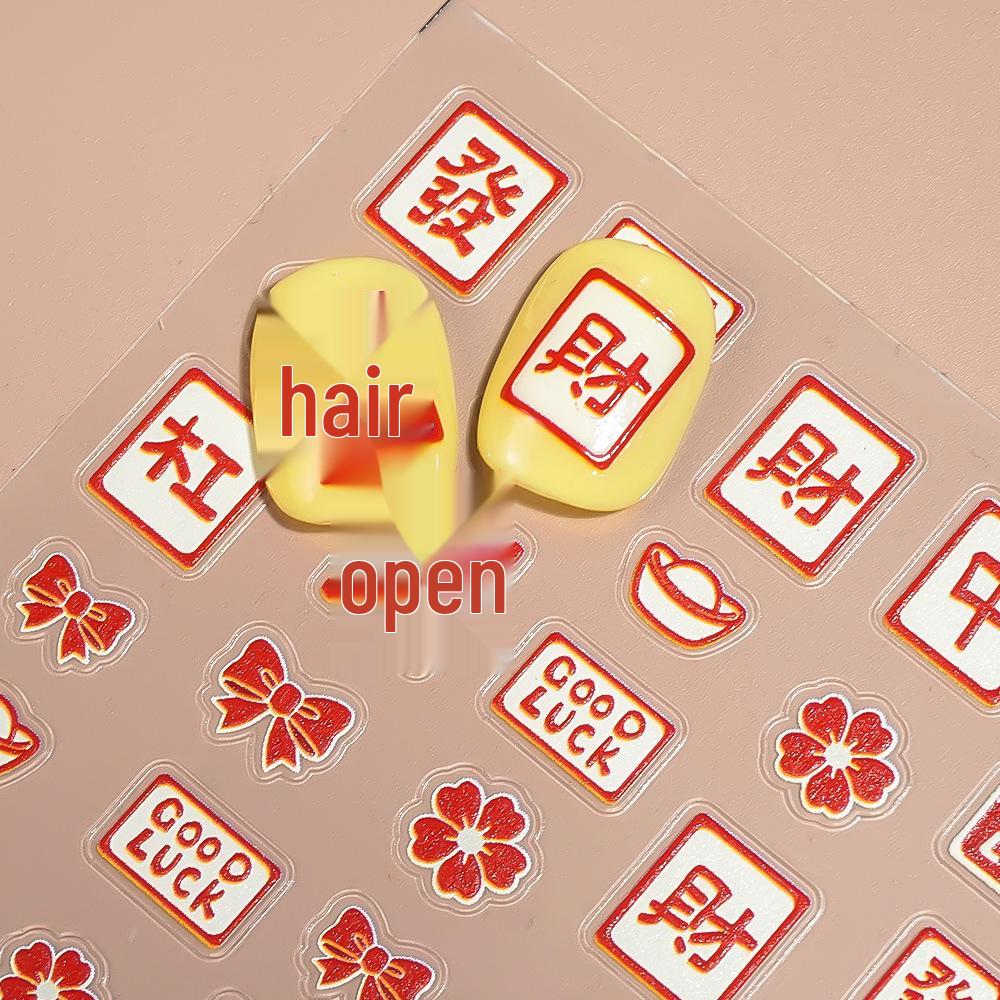 Enhance your nail art with these unique 3D nail art stickers, featuring an embossed cartoon design inspired by traditional Mahjong elements. The vibrant red Zhong Fa Cai motif adds a touch of cultural elegance and playfulness to your style. Perfect for DIY nail enthusiasts or professional nail artists, these stickers are easy to apply and create a stunning, high-quality finish. Transform your nails with intricate details and a delightful Mahjong theme, making a bold and stylish statement.