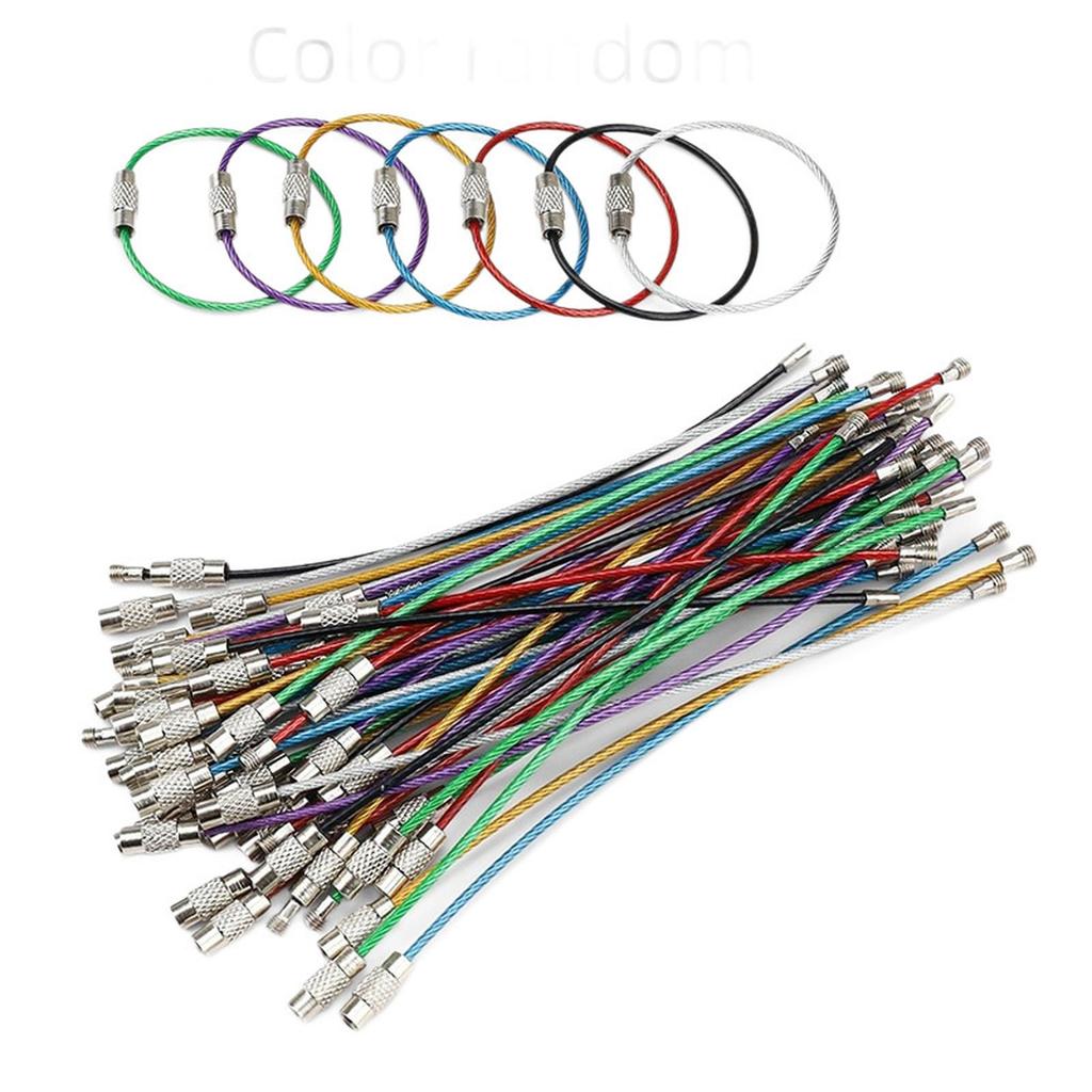 Stainless Steel Wire Keychain Ring Key Keyring Circle Rope Cable Loop Outdoor Camp Luggage Tag Screw Lock Gadget