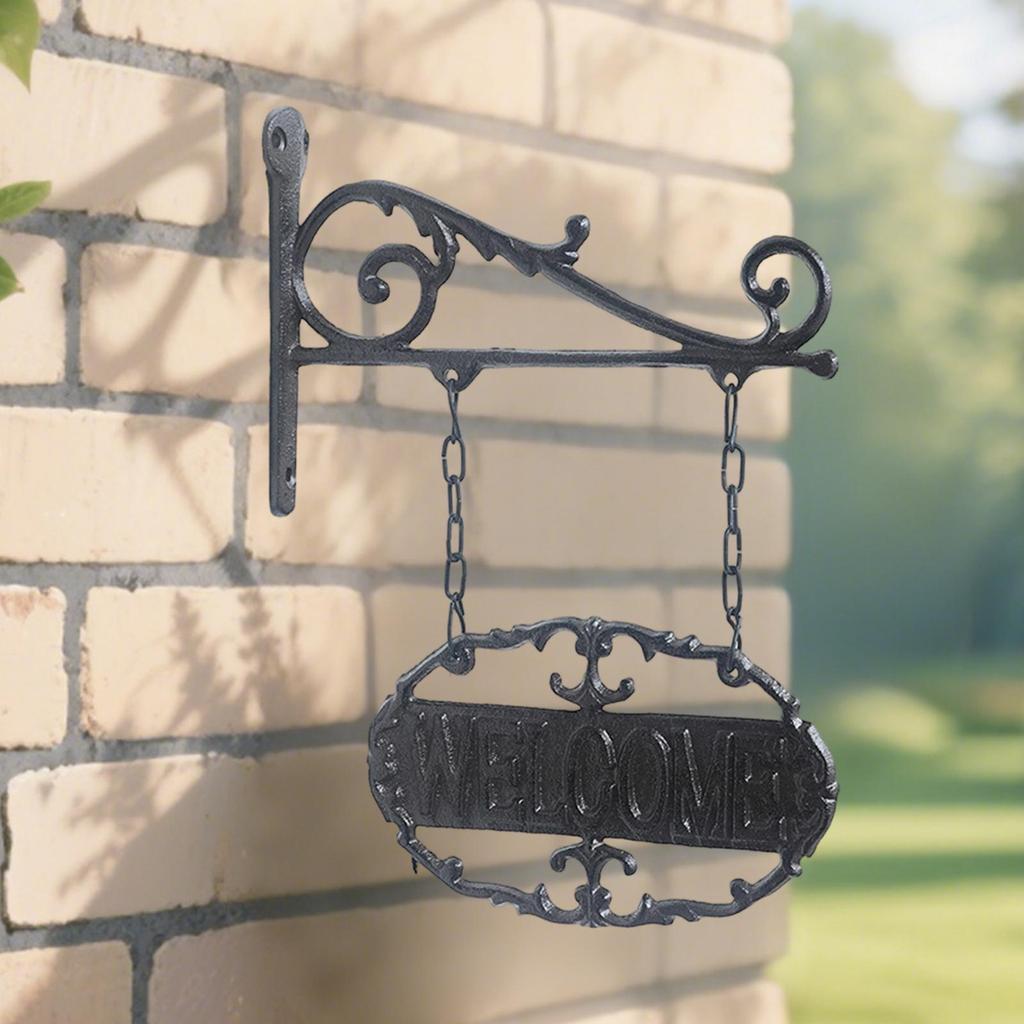 Hanging Iron Welcome Sign Plaque Durable Metal Wall Decoration for House Exterior Porch Bar Shop Door Plate