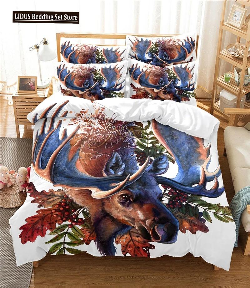 Elk Duvet Cover Set 3d Digital Printing Beautiful Wild Animals Comforter Cover For Kids Teens Polyester Bedding Set King Size