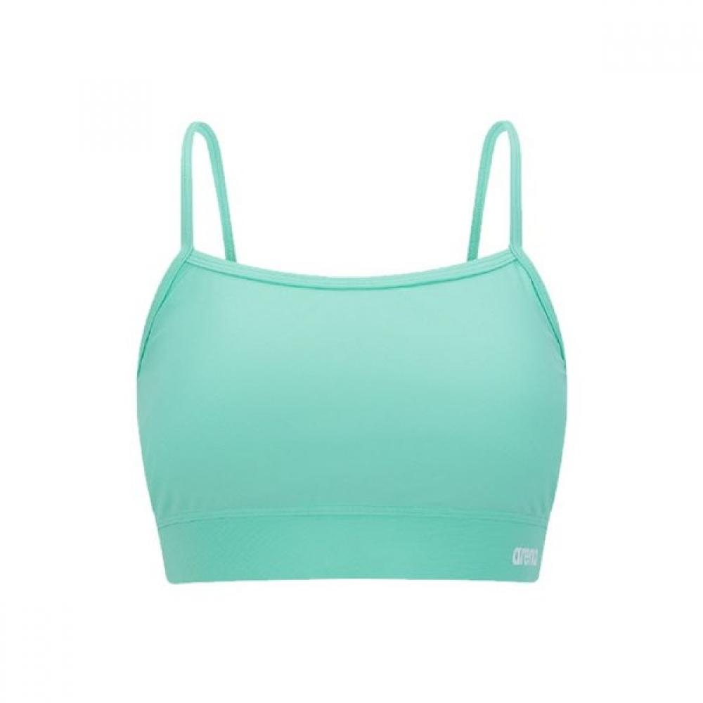 The Arena New Wave Bra Top is designed for leisure purposes related to swimming. This bra top offers a light feel and excellent stretch for a comfortable swimming experience. Additionally, its stylish mint color helps to create various beachwear styles.