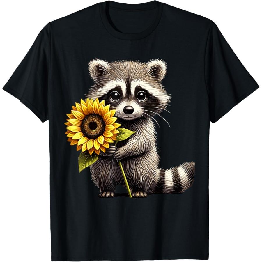 Raccoon Holding Sunflower Cute Flower Raccoon T-Shirt