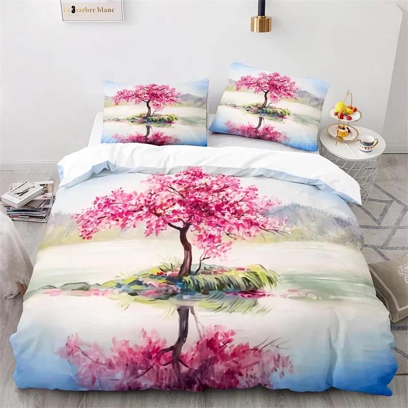 Oil Painting Duvet Cover Twin King Abstract Art Print Bedding Set Microfiber Landscape Tree Comforter Cover For Kids Teen Room