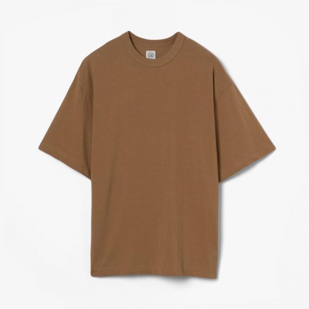 The TBRM Cotton Crewneck Tee is made from soft, breathable 100% cotton, characterized by its casual camel color.