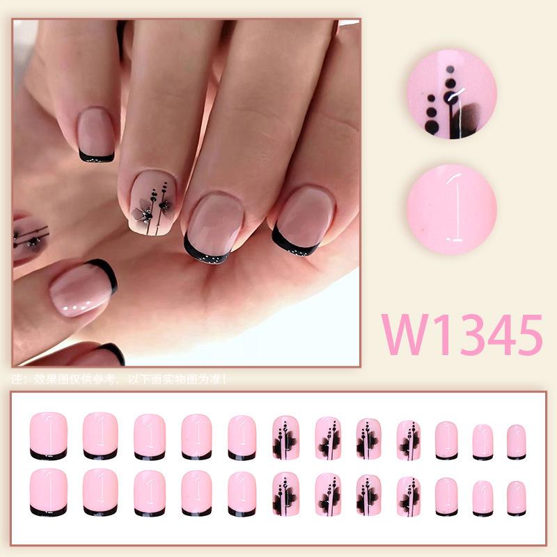 Barbie Pink & Black Leaf Silhouette Lively Press-On Nails: Brightening, Simple, Temperate European & American Style for Autumn & Winter.