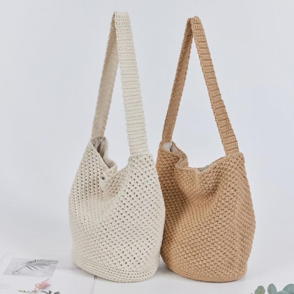 The LALA Hand-Knitted Shoulder Hobo Bag (with Charm Gift) is a handmade bag made of cotton yarn. Its natural color is easy on the eyes, and its sturdy knit is perfect for casual everyday use. Ideal for travel to carry a phone and cosmetics, it is also recommended as a gift.