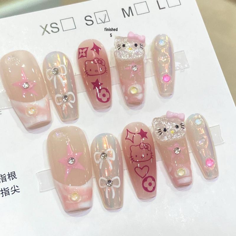 Hello Kitty Cartoon Nail Art Stickers - Long Ladder French Design for Manicures