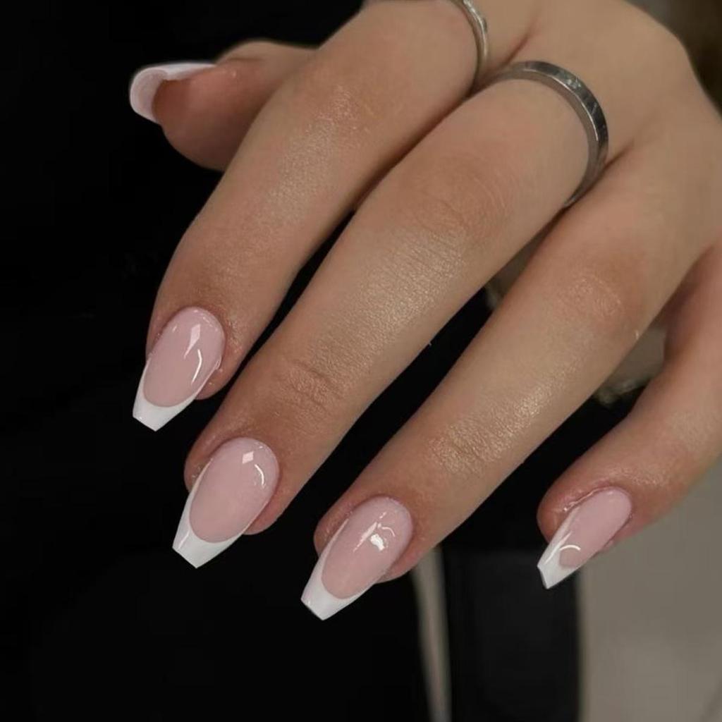 Elegant White French Round Short Ballet-Style Nude Nails - Detachable and Chic