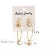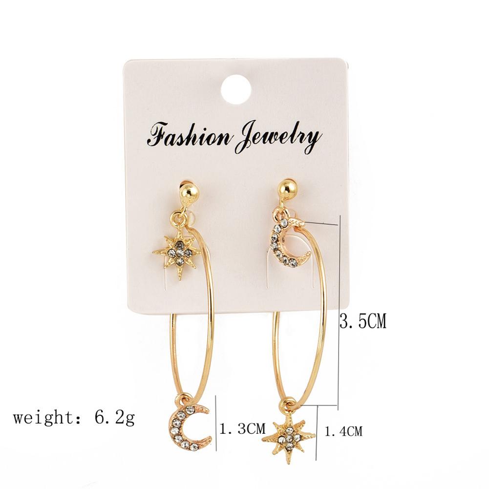 4Pcs/Set Bohemian Style Large Circle Earrings Ear Clip Crystal Moon Star Ear Stud Jewelry