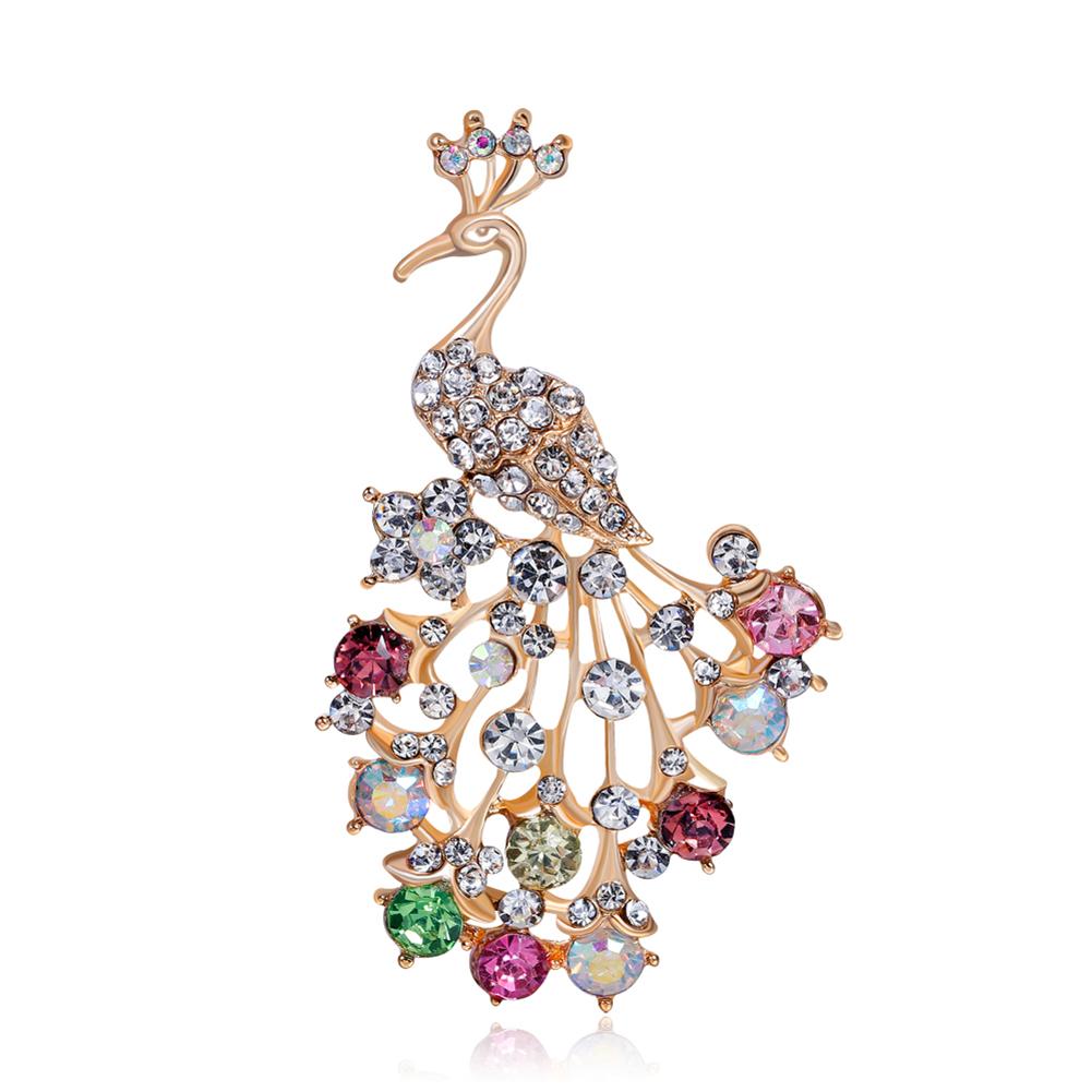 Women Elegant Peacock Brooches Fashion Shimmer Breastpin for Wedding Party