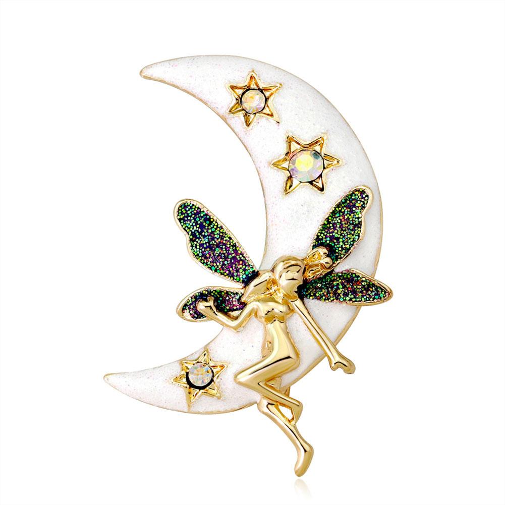 Women Fashionable Cartoon Moon Brooch Crystal Rhinestones Brooch Pins Party Jewelry Gift