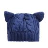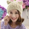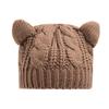 Women Knitted Hats Autumn Winter Trendy Solid Color Cute Cat Ears Cable Knit Beanie Hats
