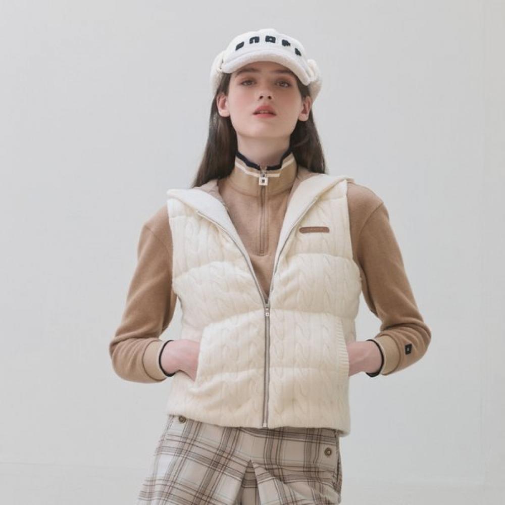 The ONOFF Women’s Knit Down Vest IVORY OF2003LB offers a stylish design while providing excellent insulation. It is lightweight yet designed to withstand cold climates.