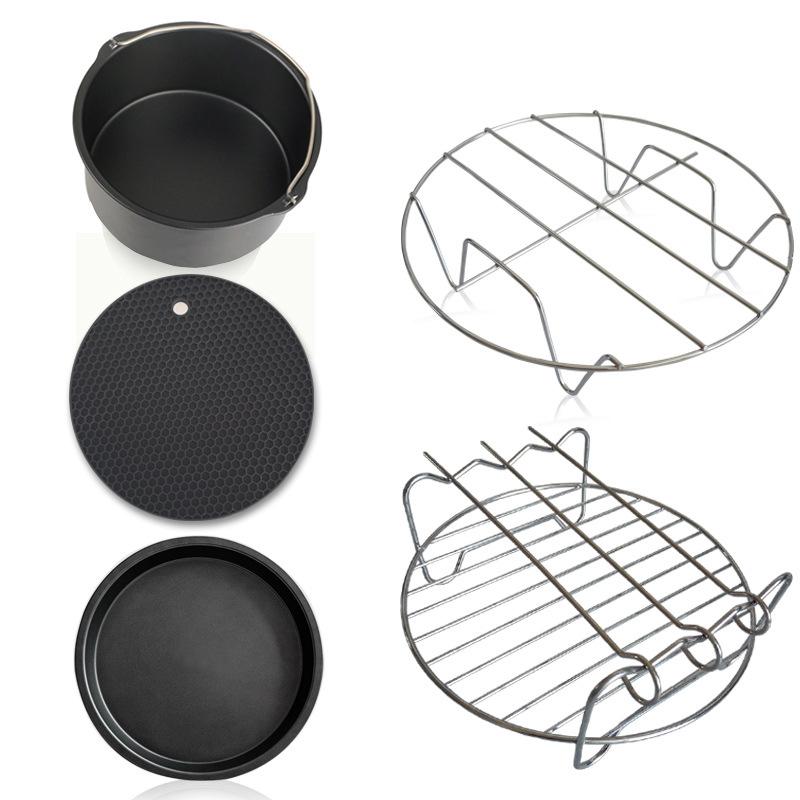 5pcs/Set Air Fryer Accessories for Baking Cooking (Cake Barrel, Pizza Pan, Metal Holder, Silicone Mat)