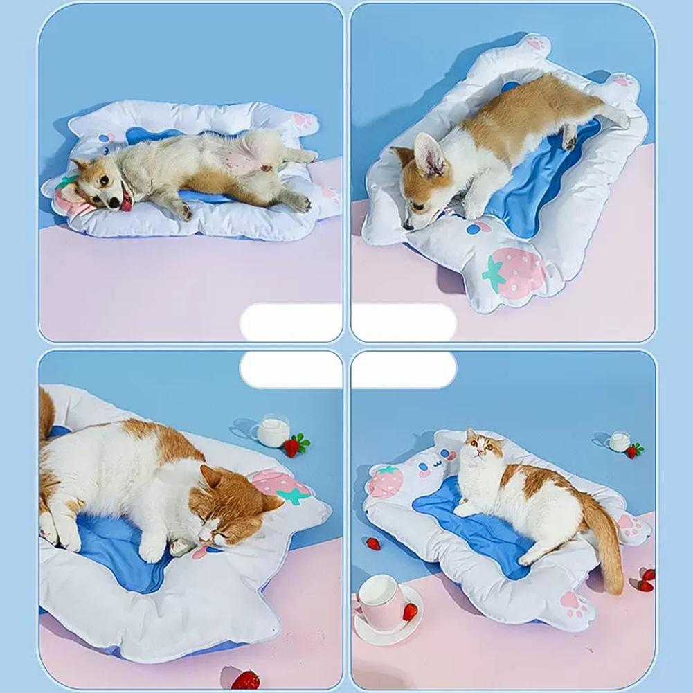 Pet Strawberry Pattern Ice Pad 3-layer Waterproof Summer Cooling Mat Sleeping Bed Pet Supplies For Dogs Cats
