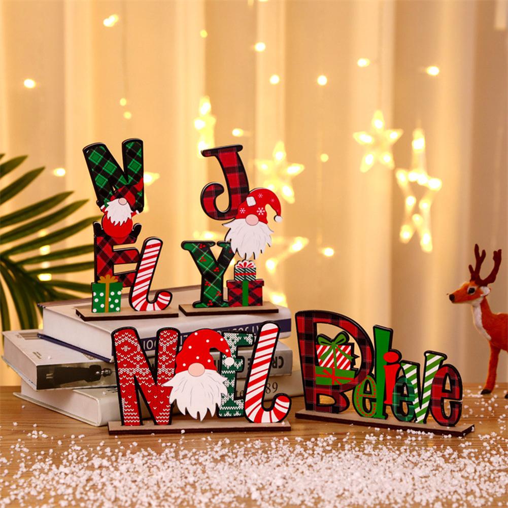 Christmas Colorful Wooden Desktop Ornaments Letters Santa Creative Decor For Home Indoor Desktop Decoration