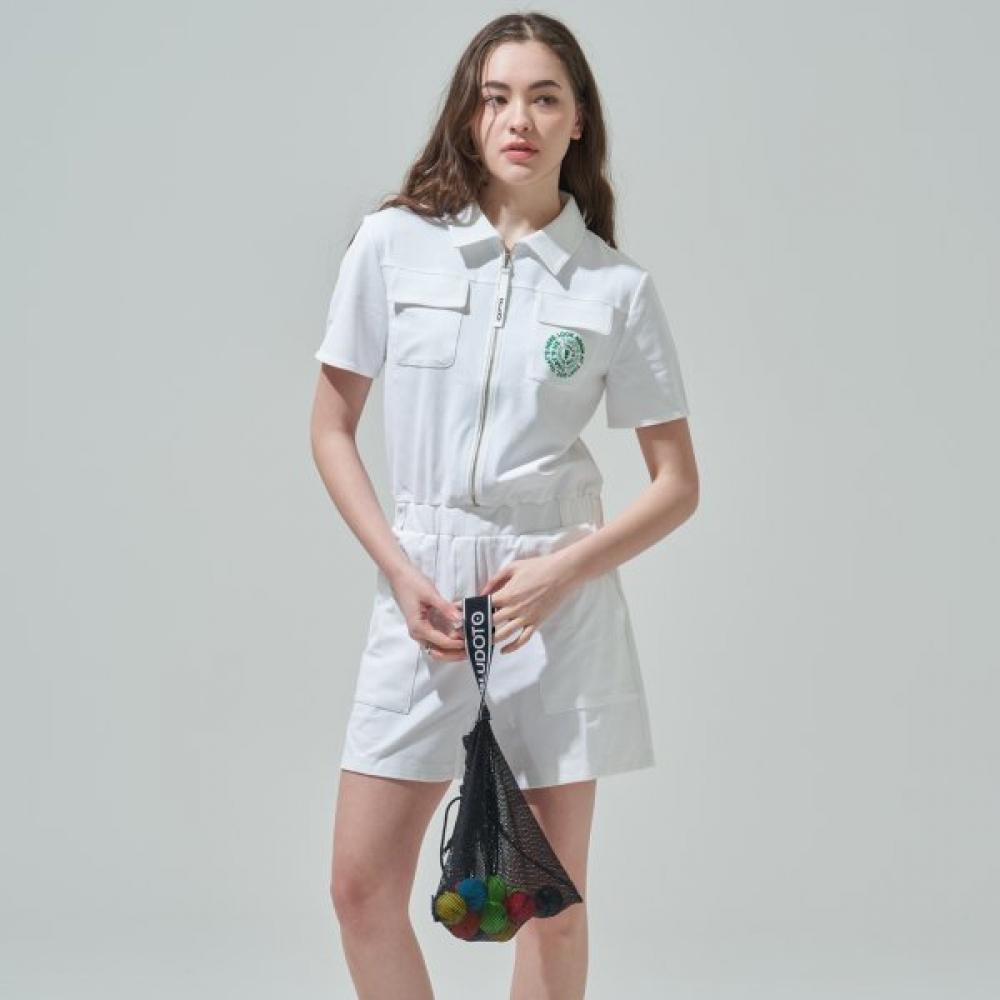 The BLUDOT short-sleeve jumpsuit is an ideal choice for SS season rounding, featuring a lightweight and comfortable design that does not cling to the body thanks to its stretchable fabric.