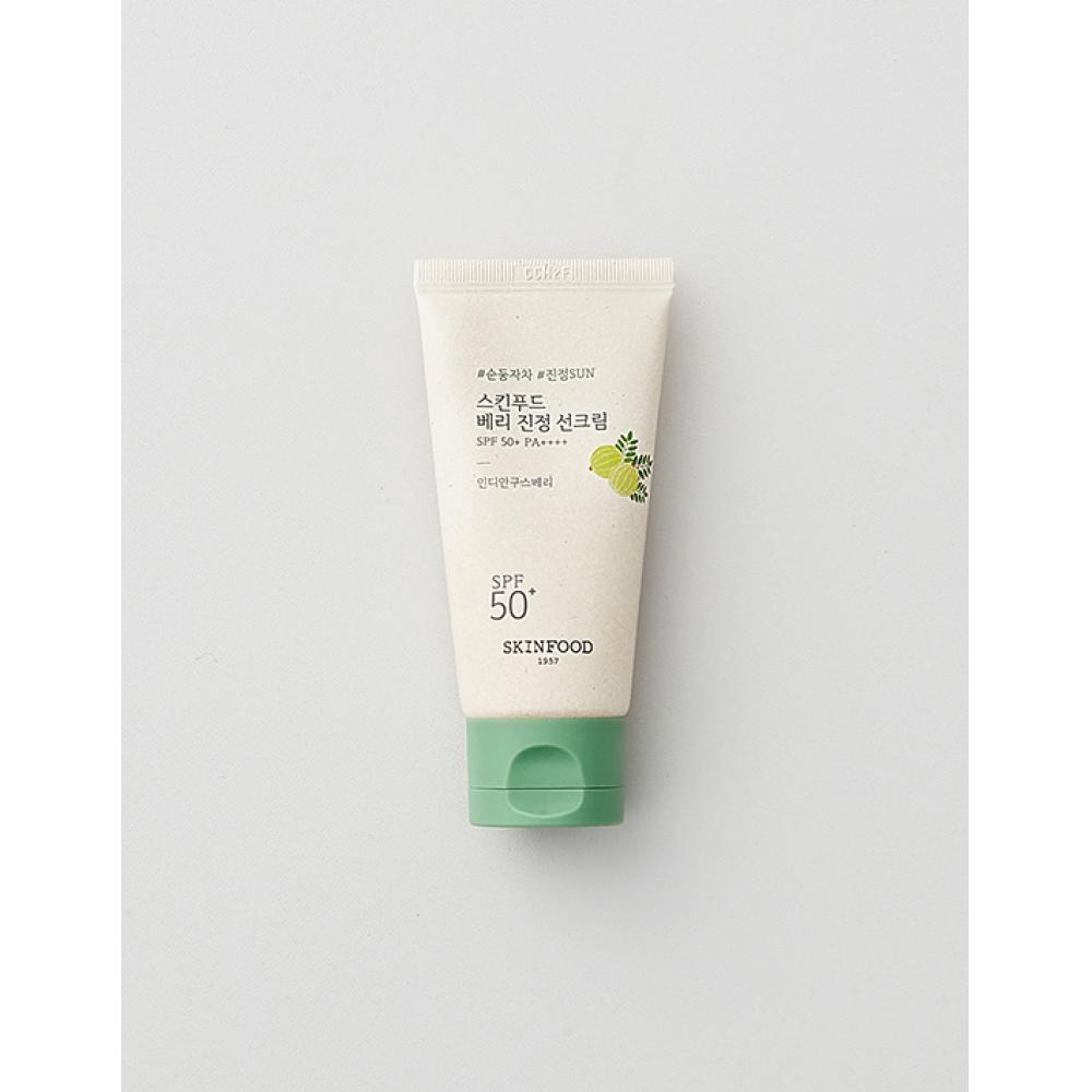 Skinfood Berry Soothing Sunscreen 50ml SPF50+ PA++++ is a mineral vegan sunscreen containing Indian Gooseberry extract that boasts powerful UV protection with SPF50+ and PA++++. It finishes without greasiness, ensuring a burden-free experience for the skin and is suitable for all skin types. With a soft and elastic texture, it delivers hydration while soothing and protecting the skin.