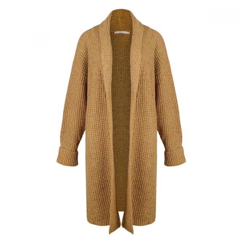 It is a new product for the 2019 autumn-winter season, showcasing a shawl collar and solid knit texture. With its unique color and comfortable fit, it is suitable for everyday styling.
