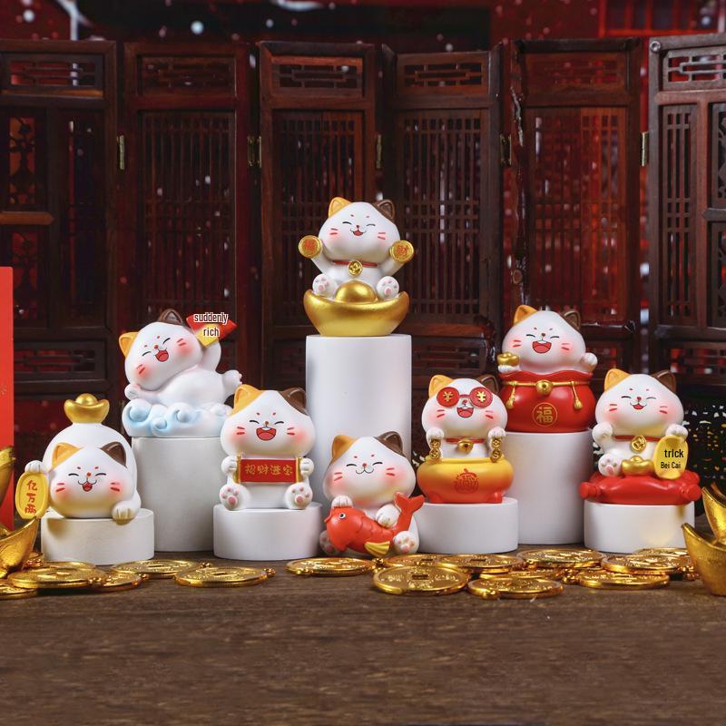 Blessings Beckoning Cat Blind Box: Wealth & Treasure Design Desktop Ornament Gift