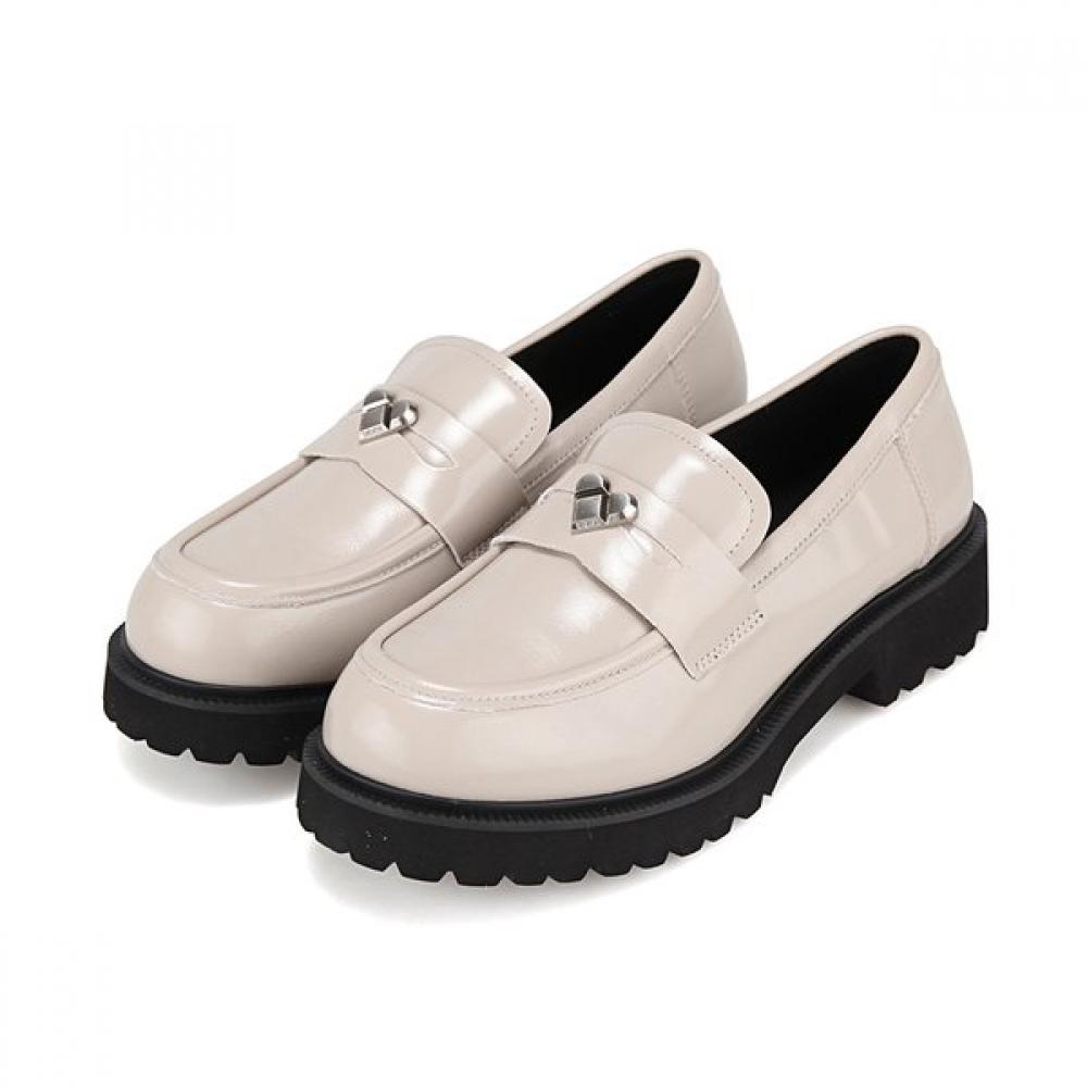 The BABARA Cowhide Women's Loafer BBI537IV features a chunky style and heart embellishments, designed for daily wear. Made from soft cowhide, it provides a comfortable wearing experience and has a stable heel height of 3cm for supportive walking. The ivory color complements various looks.