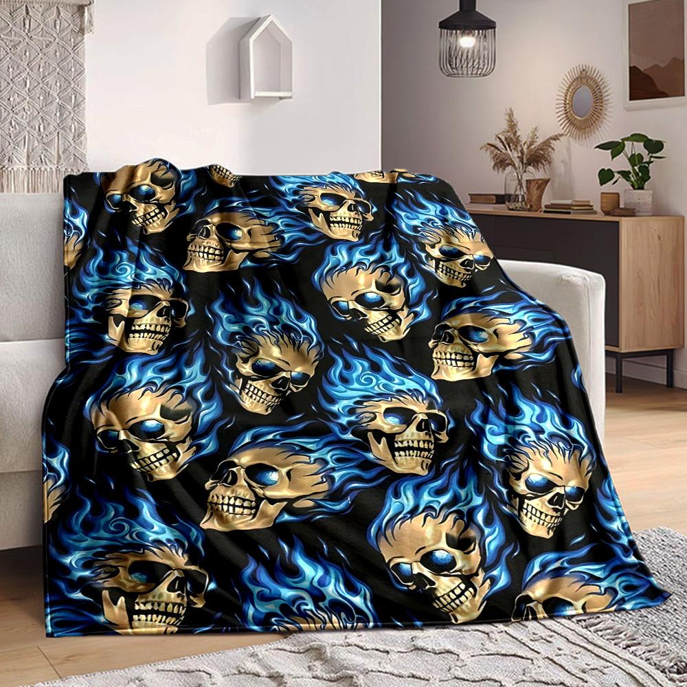 1pc Flame Skulls Blanket, Lightweight Flannel Throw Blanket For Sofa, Bed, Travel, Camping, Living Room, Office, Couch, Chair, And Bed
