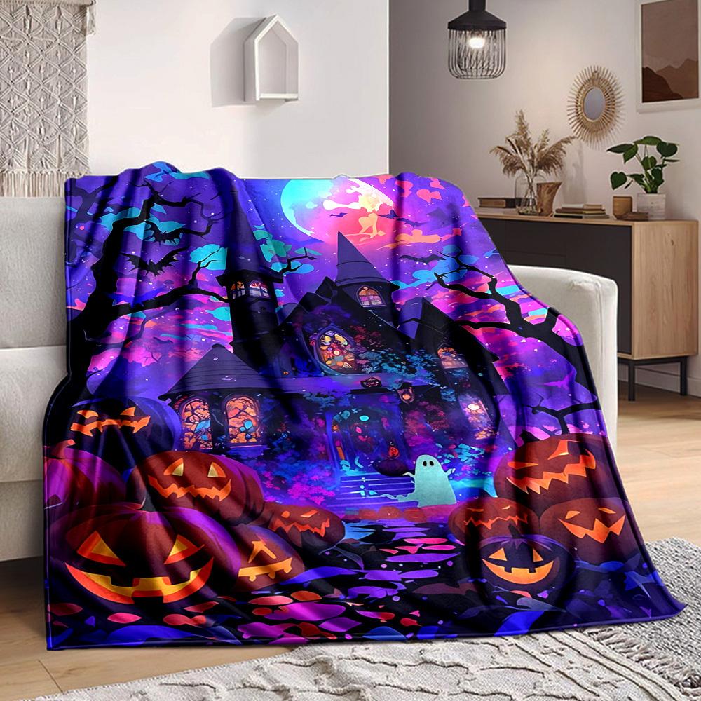 1pc Halloween Haunted Blanket, Lightweight Flannel Throw Blanket for Sofa, Bed, Travel, Camping, Living Room, Office, Couch, Chair, and Bed