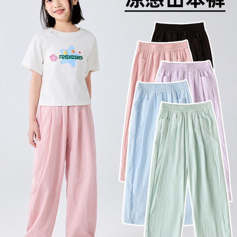 Children's Thin Yamamoto Pants, Summer Girls' Ice Silk Wide-Leg Long Pants, Loose Mosquito-Proof Casual Solid Color Pants for Older Children
