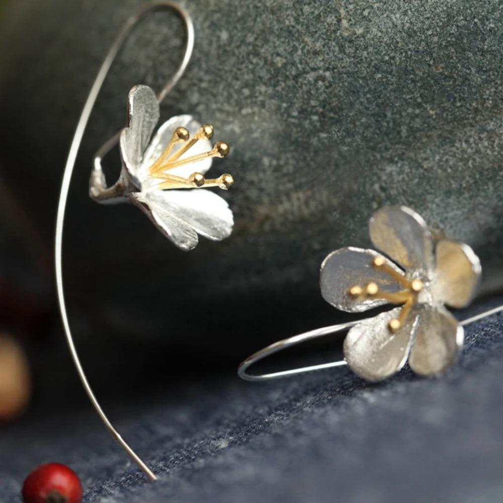 925 Silver Flower Long Tassel Earrings Elegant Thai Jewelry For Women