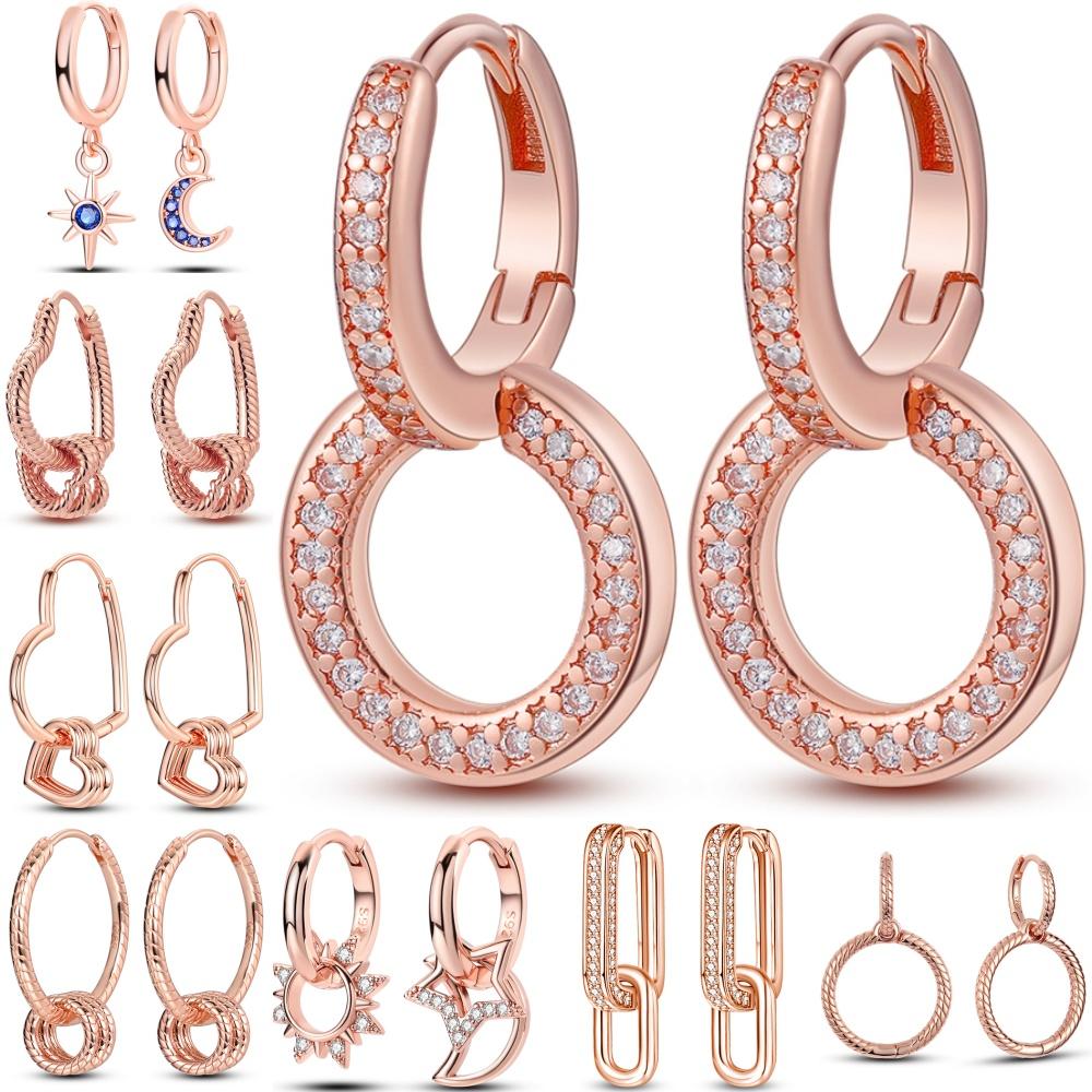 925 Silver Geometric Rose Gold Drop Earrings For Women Elegant Fashion Jewelry S925 Fine Gifts