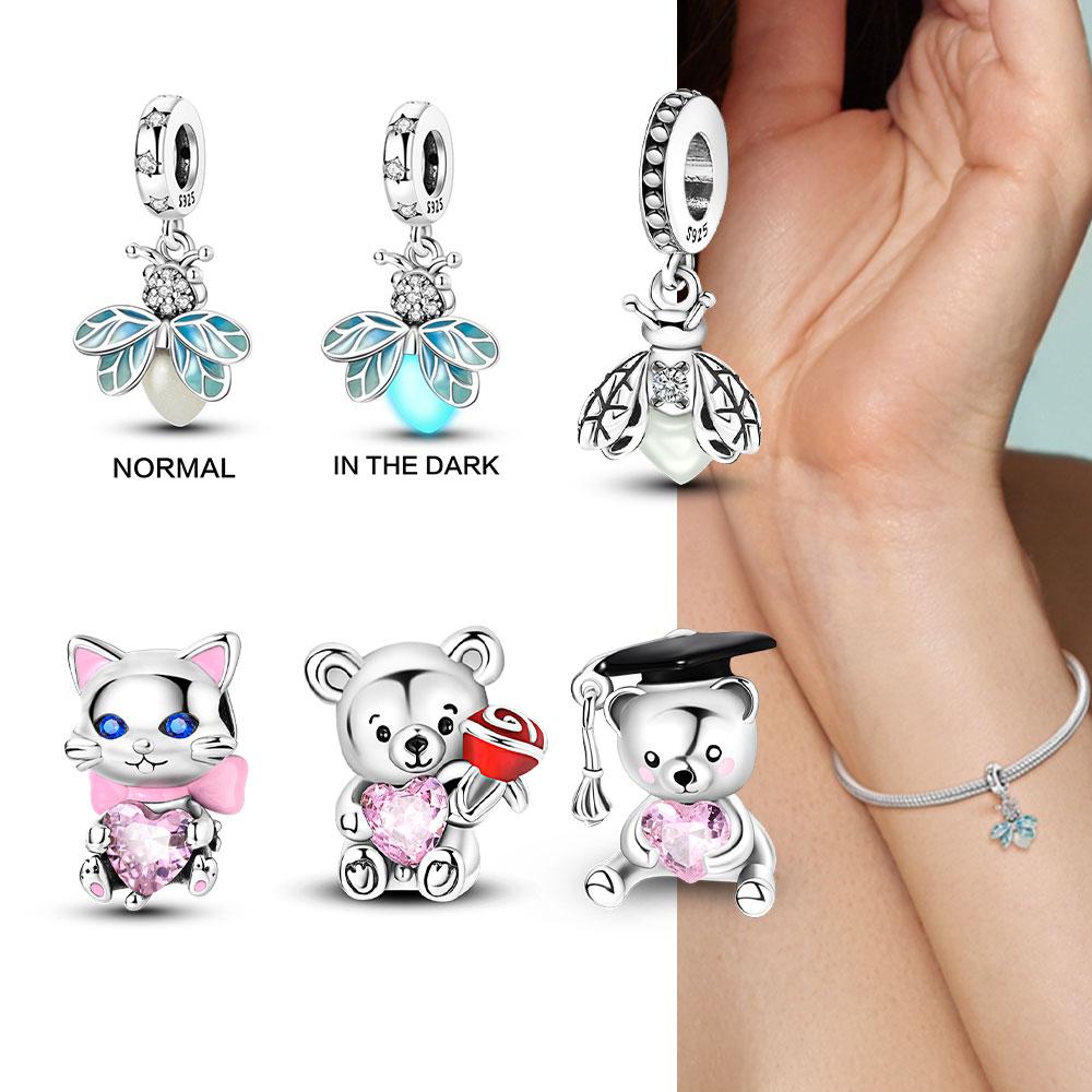 New 925 Silver Cute Cat Dog Charm Heart Pendant Beads Fit Bracelet DIY Women Jewelry Fine Gift