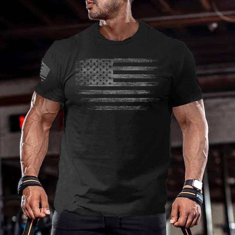 Gym T-shirts USA Flag Print Oversized T-shirts Men's Outdoor Cotton Tee Shirt Summer Casual Loose Short-sleeved Men's T-shirts