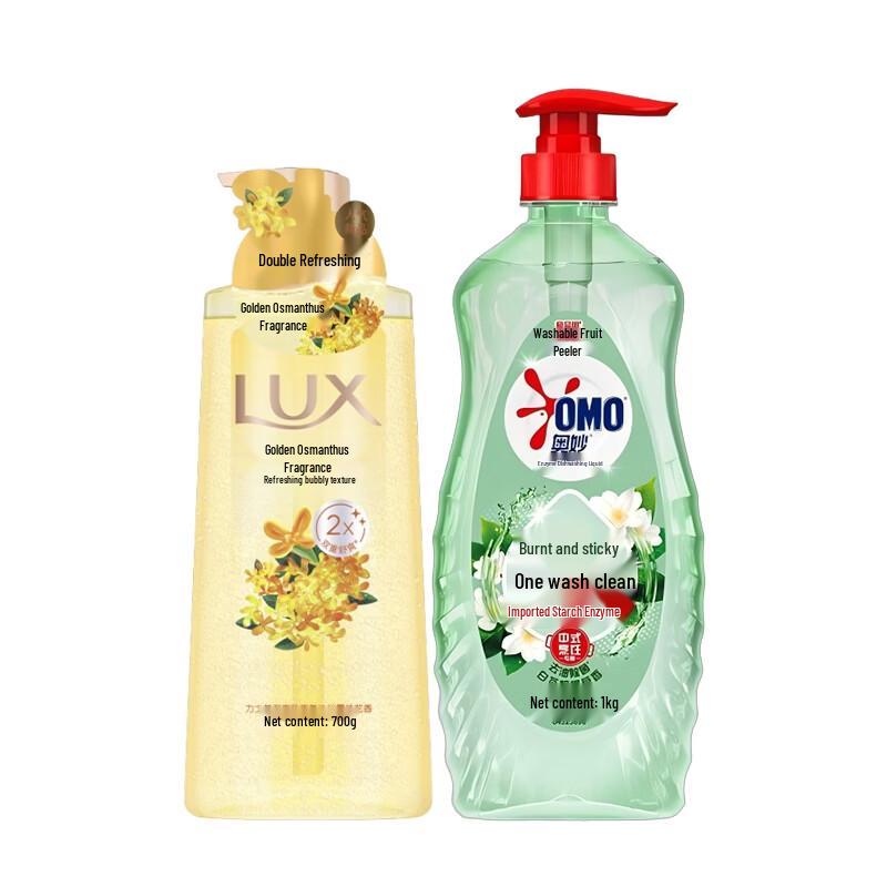 lux Osmanthus Shower Gel & OMO White Tea Lemon Grass Dish Detergent Bundle