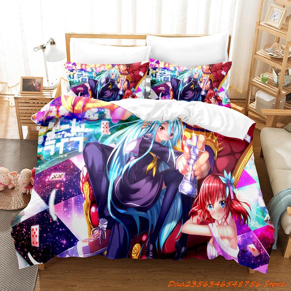 New Personelity New No Game No Life Bedding Set Cartoon Anime Three-Piece Set Adult Kid Bedroom Duvetcover Sets 3D Kawaii Girl
