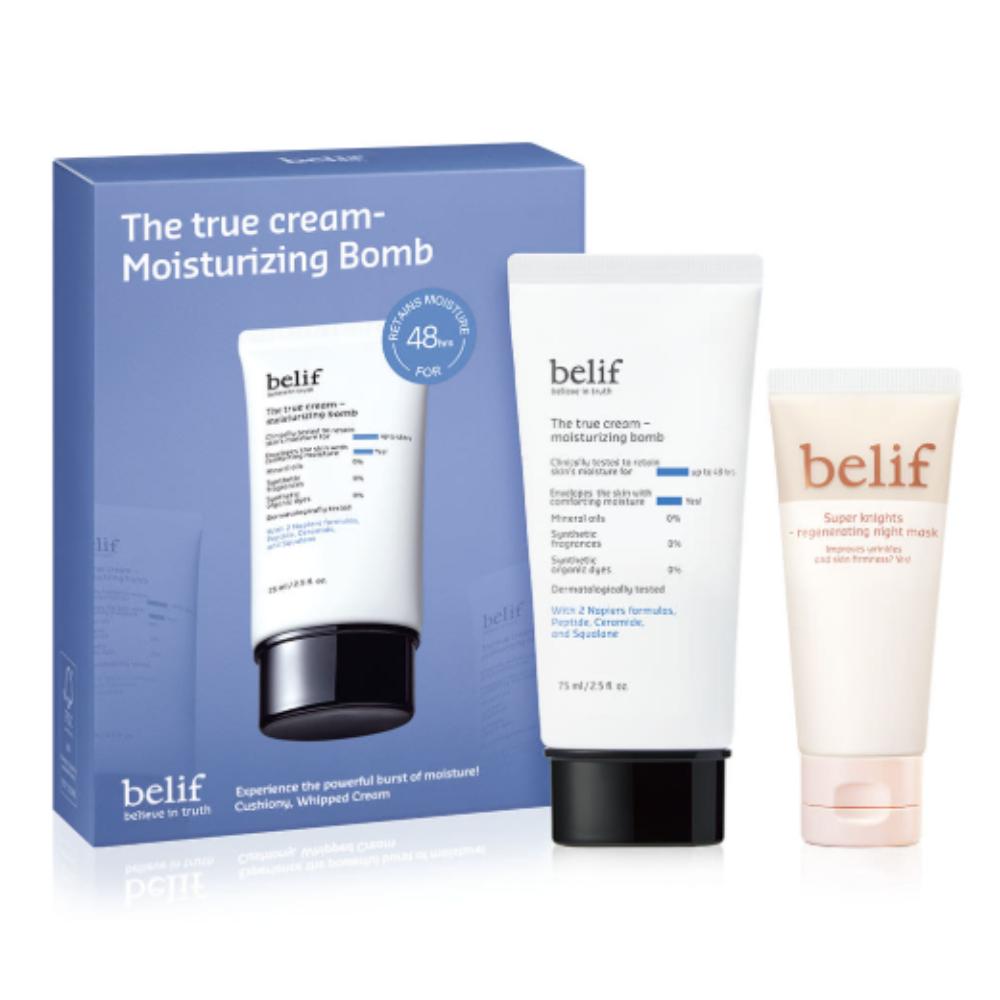belif The True Cream Moisturizing Bomb & Super Knights Regenerating Night Mask Set - Moisturizing Bomb 75ml + Night Mask 35ml
