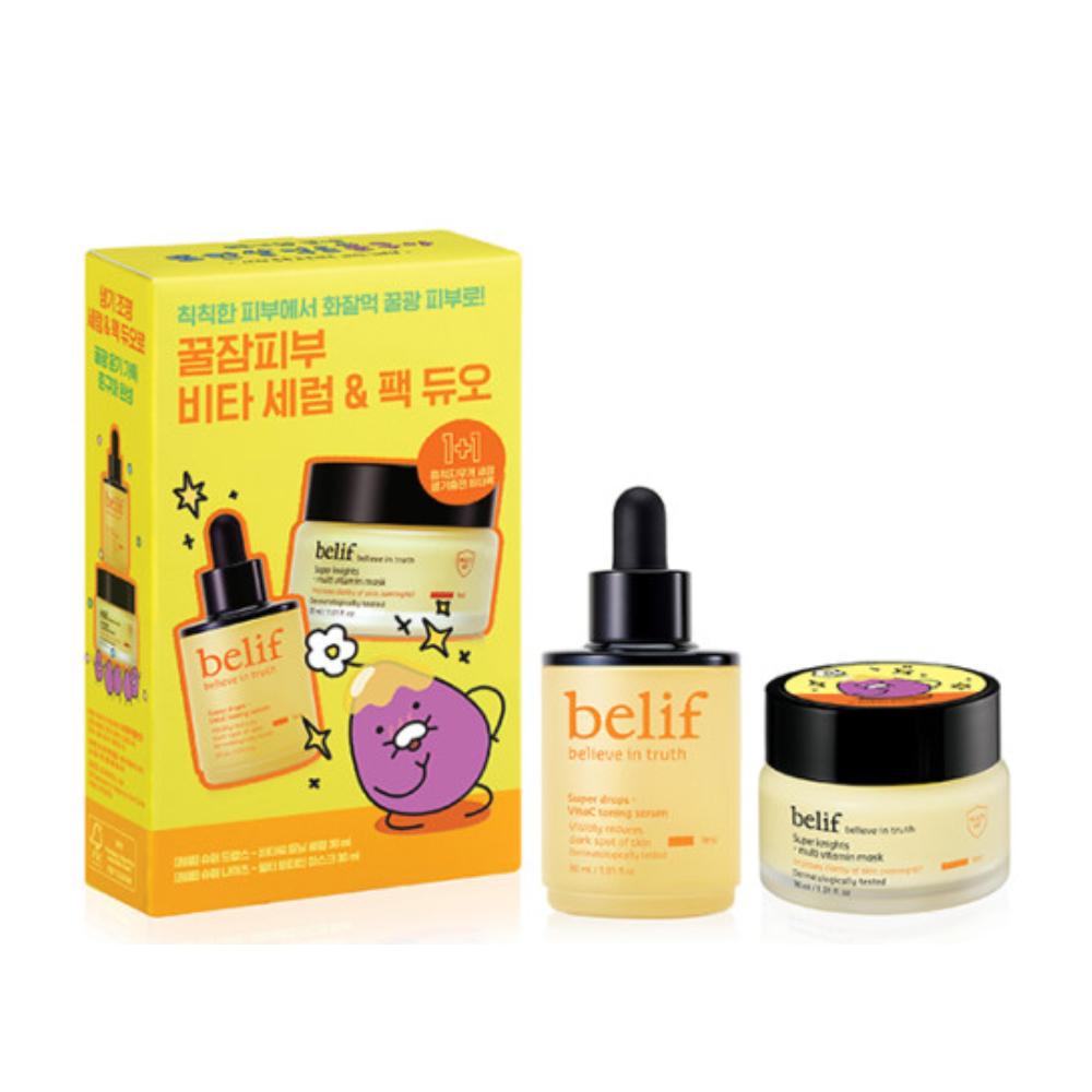 SEO Keywords: belif vitamin c serum, brightening face serum, multi vitamin mask, Korean vitamin skincare, belif super drops, skin toning serum, vitamin sleeping mask, K-beauty brightening set, antioxidant serum, radiant skin duo