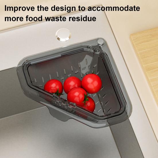 Efficient Corner Drainage Design: Featuring a triangular shape that fits perfectly into sink corners, this basket maximizes under-sink space while promoting optimal water flow. The design allows water to drain freely through the basket while effectively trapping food particles, preventing clogs and maintaining a clean, sanitary sink area during meal preparation.